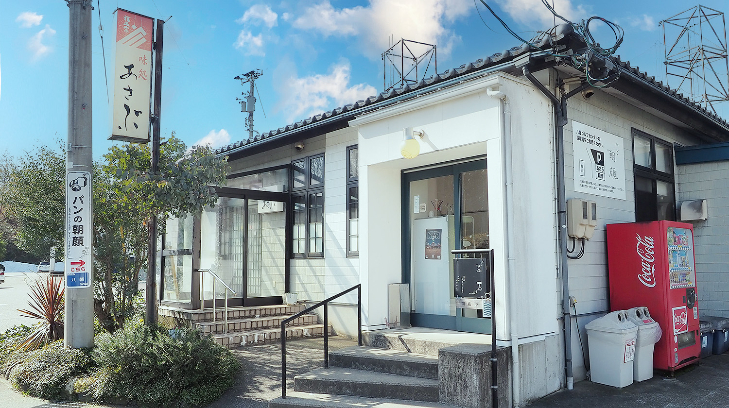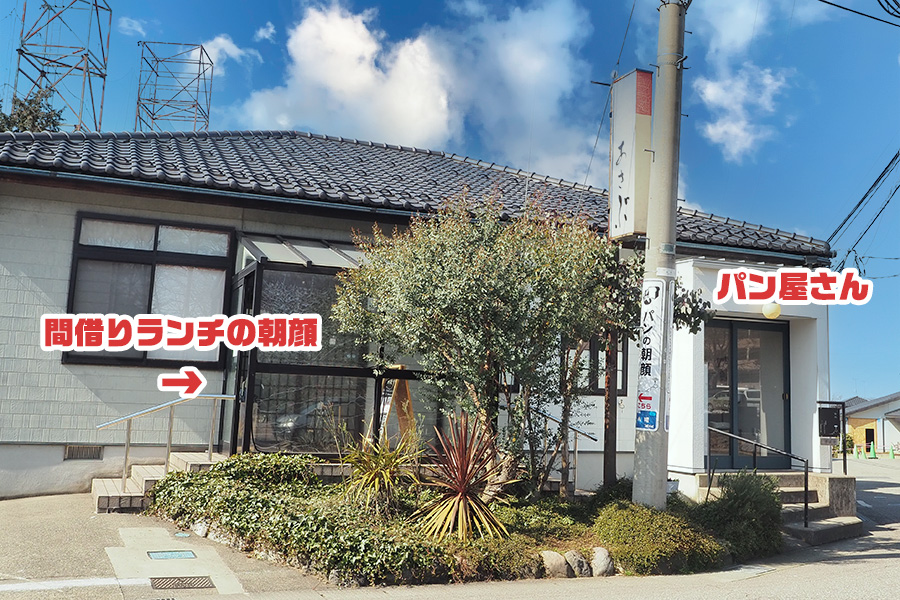 右側が「パンの朝顔」、左側が「味処あさぶ」。