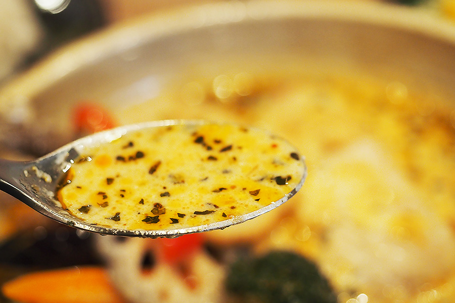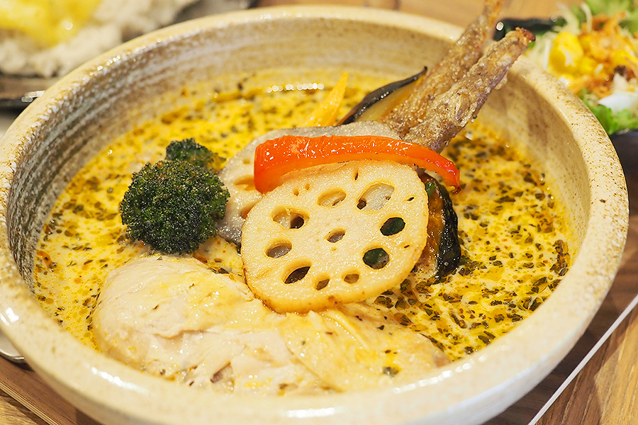 北海道・札幌仕込みのスープカレーを石川の食材で仕上げた「金沢スープカレー」。ただのスープカレーではなく、しっかり「篤乃屋の一皿」になっています。