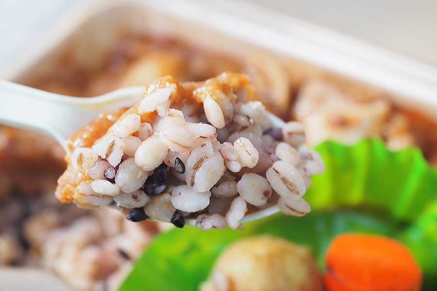 そして、このもちっとプチプチしたごはんは「雑穀玄米」。糖質の代謝に必要とされるビタミンやミネラルを豊富に含んでいるそうで、なによりカレーとの相性が抜群。食感のコントラストが心地よく、ついスプーンが進みます。