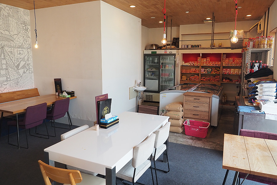 店内には併設の「ハラールマート」があり、スパイスや食材がずらりと並んでいます。