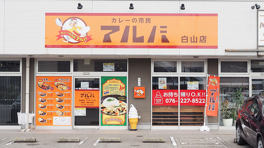 金沢カレーの源流の一つ「カレーの市民アルバ」。元々「カレーのターバン(現チャンピオンカレー)」の工場長だった兄の今度忠さんと、ヨーロッパ各国で食の修業した弟の今度孝さんが、新しいアルバカレーを作り1971年に石川県小松市にお店をオープンしました。なので「加賀カレー」とかも謳ってた時期もあり、小松市のソウルフードです。